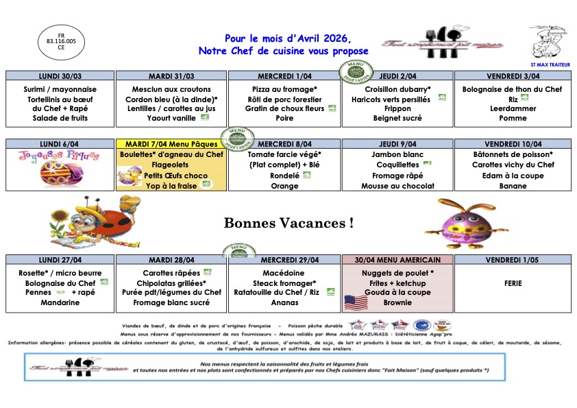 Votre (vos) enfant (s) doi(ven)t avoir un dossier complet pour l’année 2024-2025 (s’adresser au service des affaires scolaires).