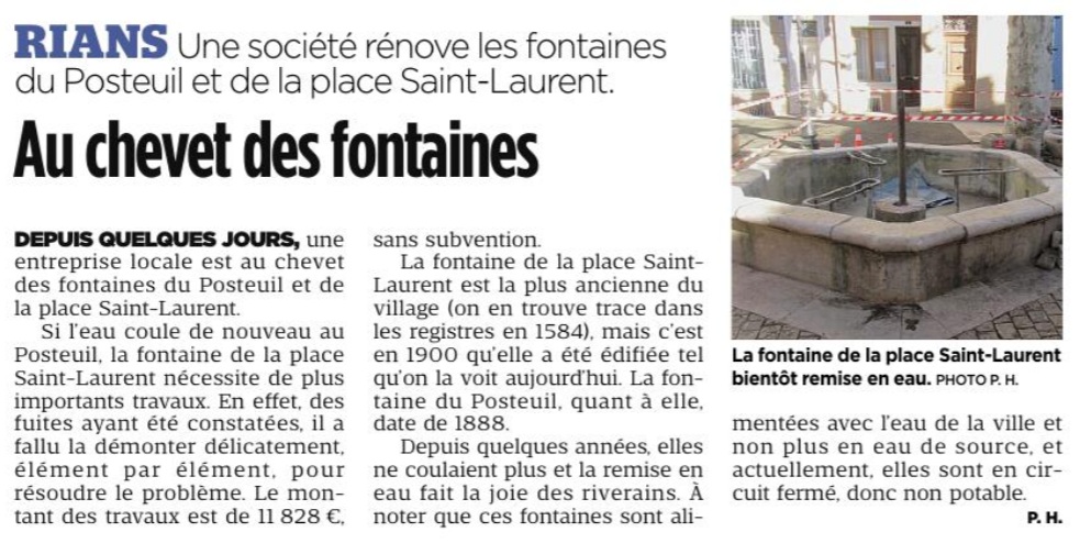 Les articles de la revue de presse sont extraits de VAR MATIN (© Pascal HOCQ).Le Centre Français d’exploitation du droit de Copies (C.F.C.) a délivré par contrat, à la Mairie de Rians, une autorisation de reproduction et de représentation des articles de presse.